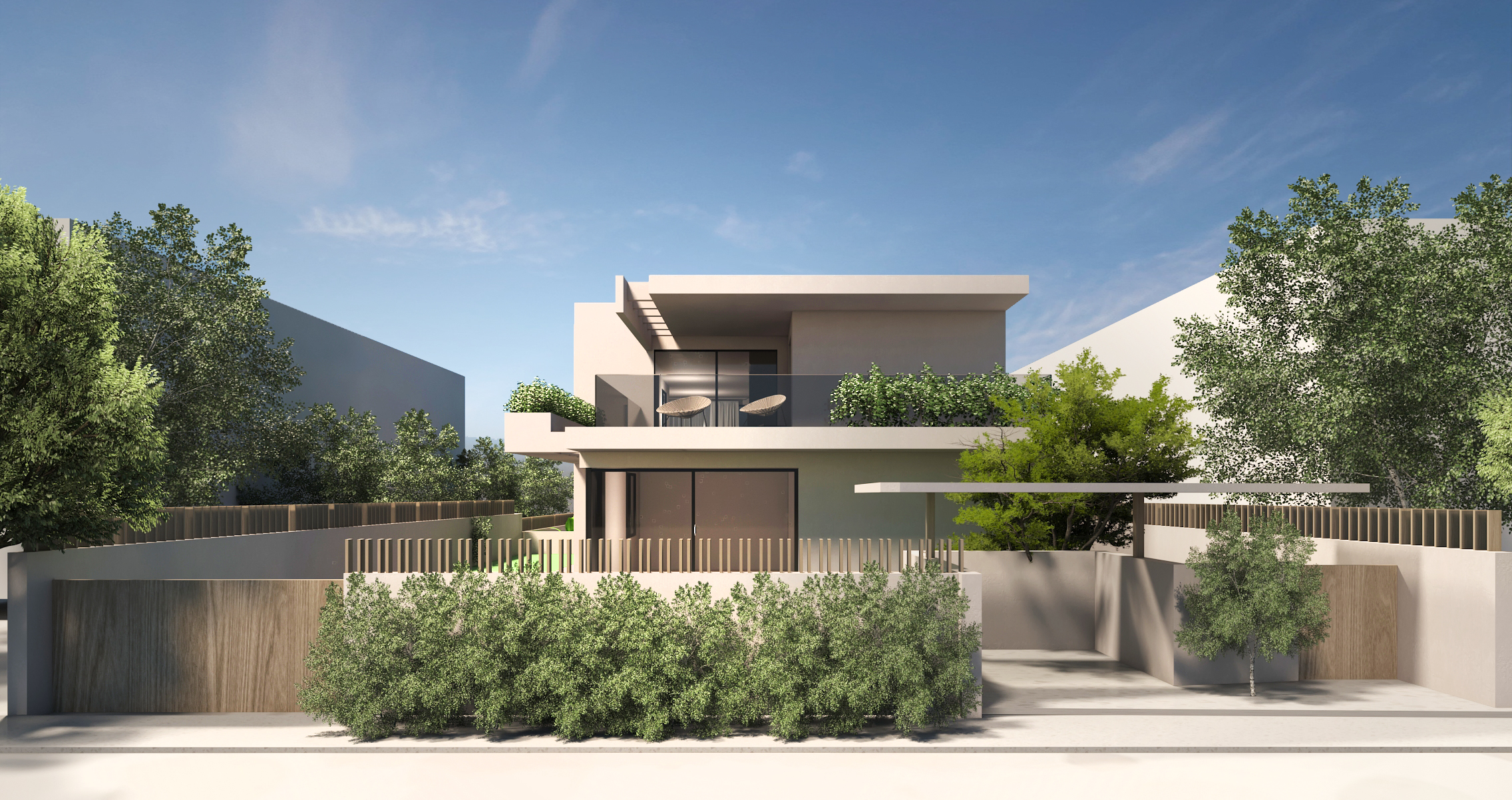 A complex of three apartments – residences with a swimming pool.