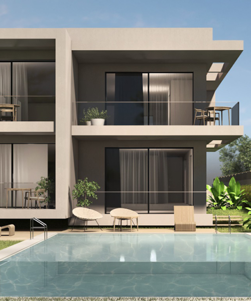 Ένα συγκρότημα τριών διαμερισμάτων – κατοικίες με πισίνα.