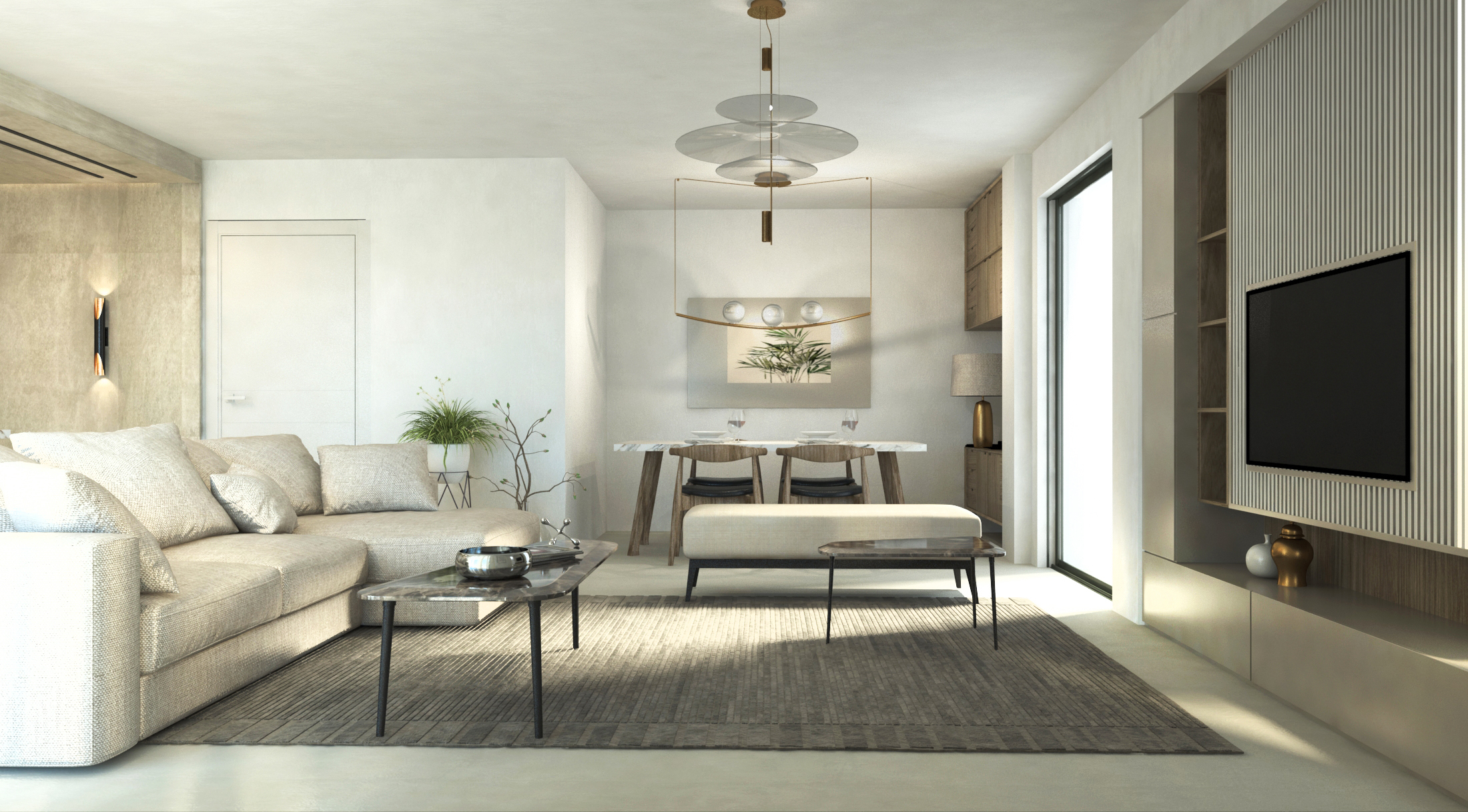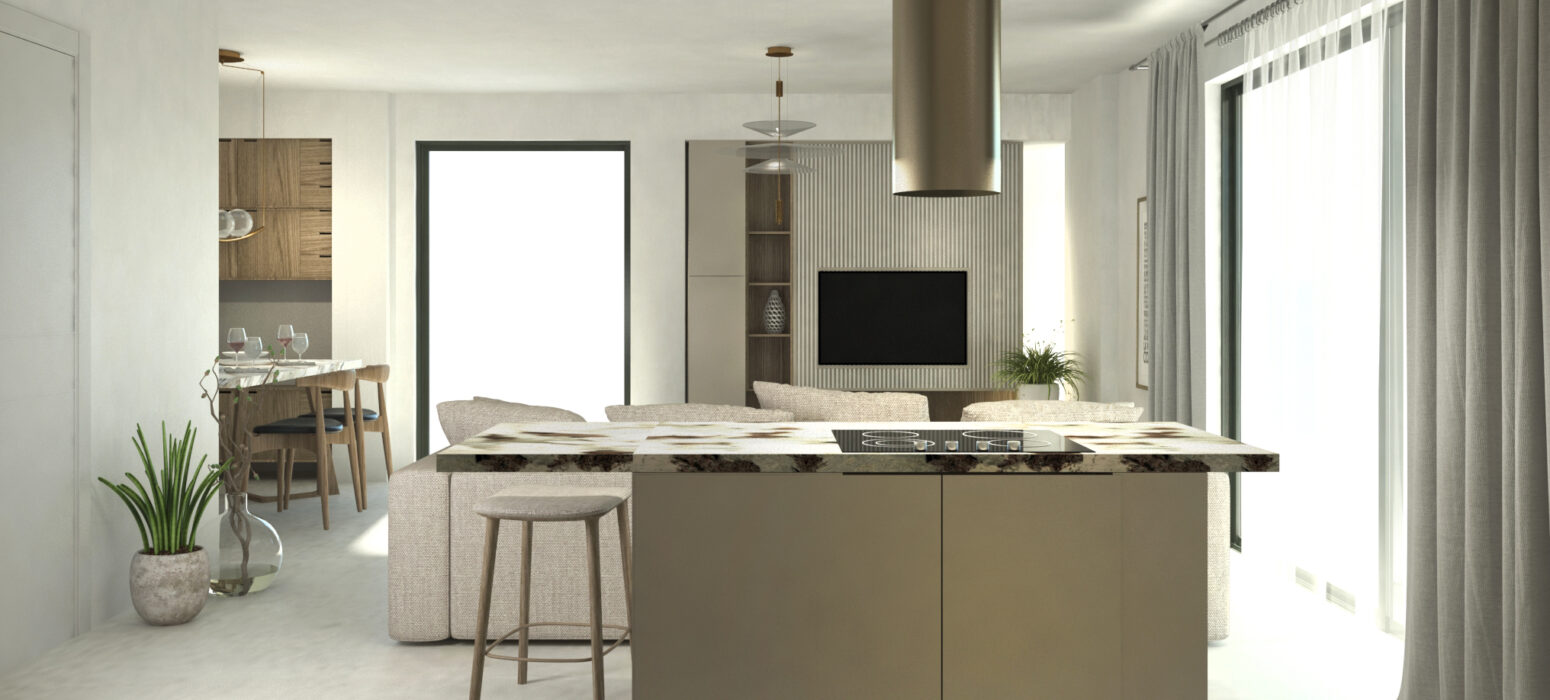 Αποτελείται από καθιστικό – κουζίνα – ενιαίο χώρο, δύο υπνοδωμάτια, λουτρό και εξώστες.