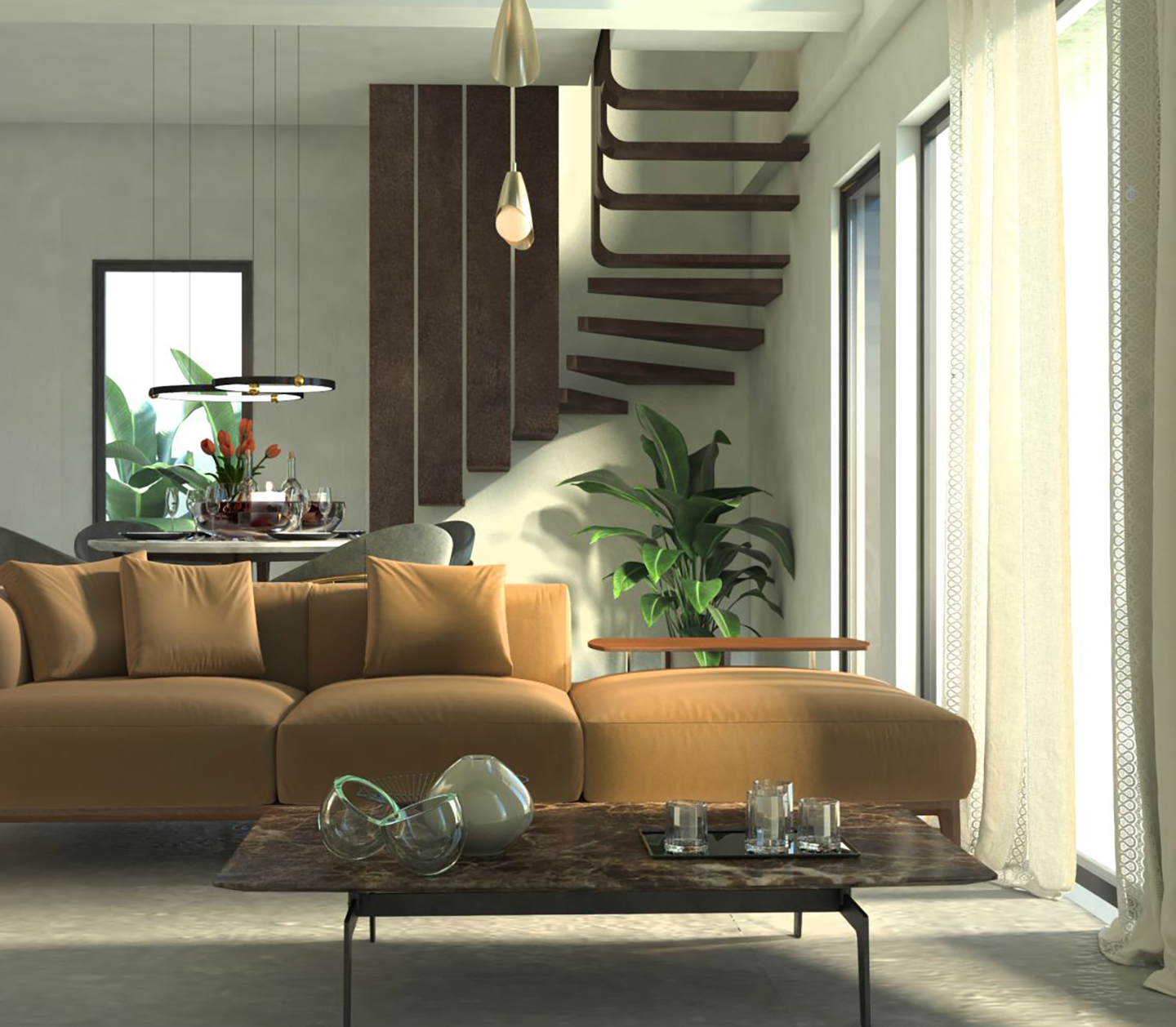 Αποτελείται από καθιστικό – κουζίνα – ενιαίο χώρο, W.C., ισόγειο – υπαίθριο χώρο αποκλειστικής χρήσης. Η εσωτερική σκάλα, οδηγεί στον πρώτο όροφο, που βρίσκεται το υπνοδωμάτιο και το λουτρό.