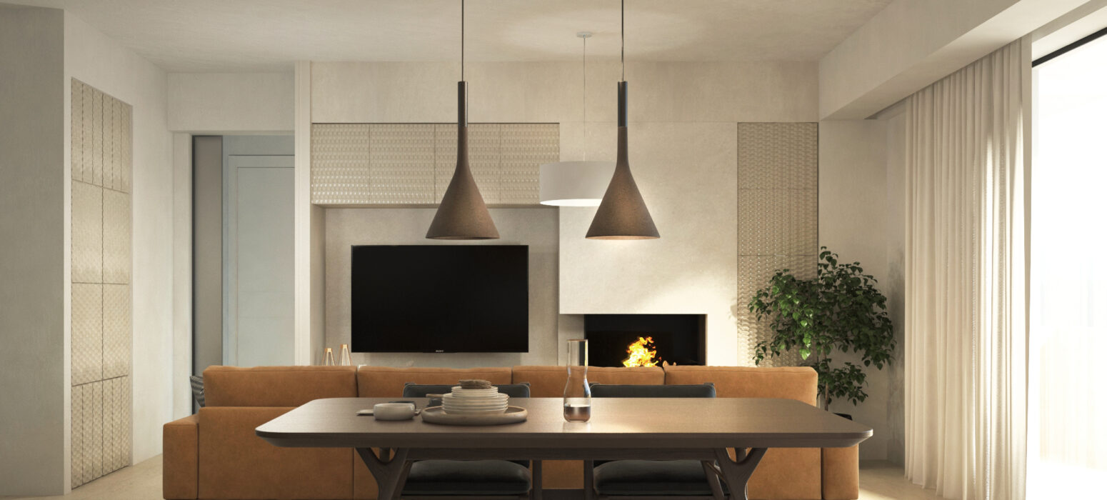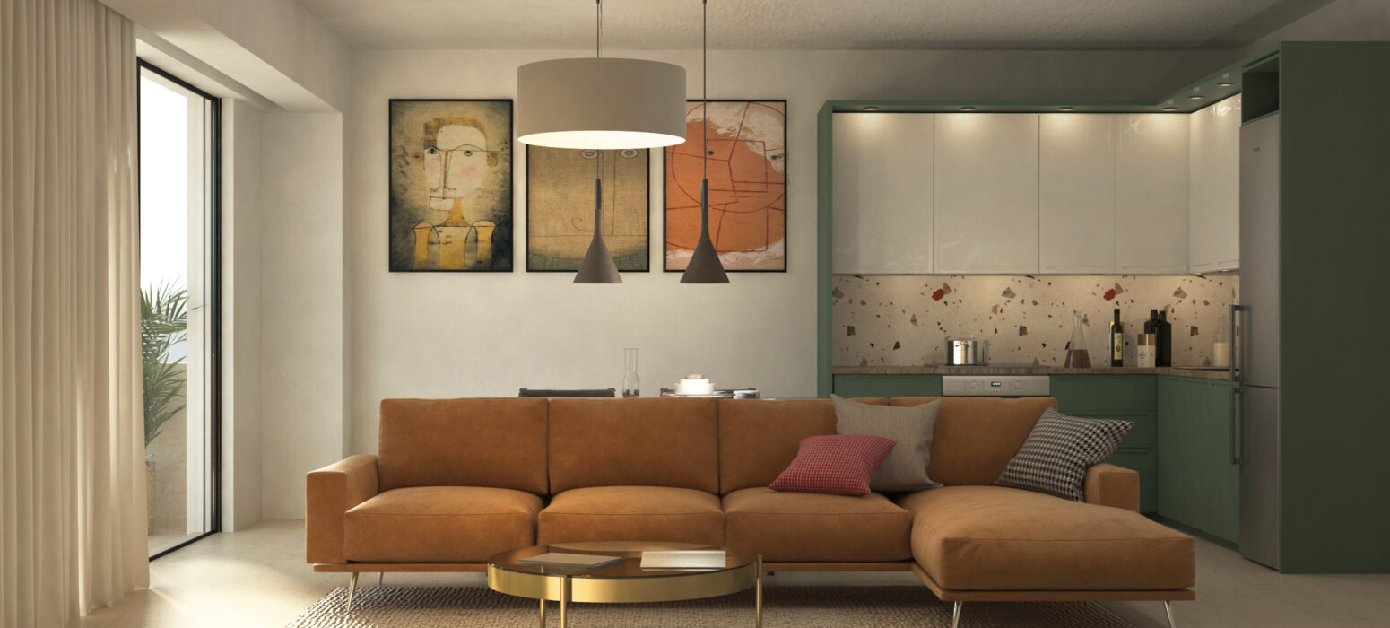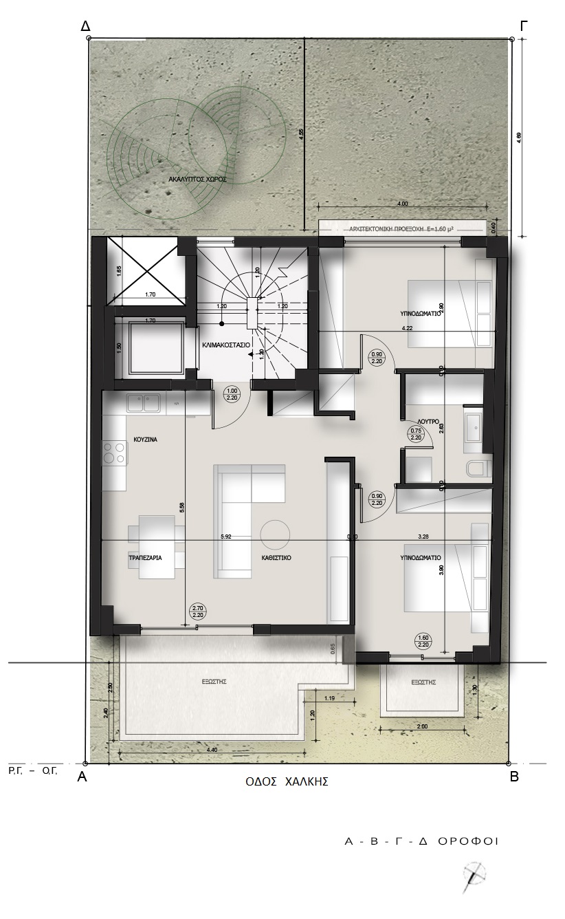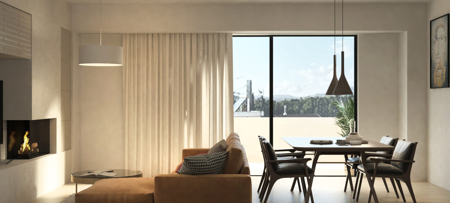 Αποτελείται από καθιστικό – κουζίνα – ενιαίο χώρο, δύο υπνοδωμάτια, λουτρό, ενεργειακό τζάκι και εξώστες.