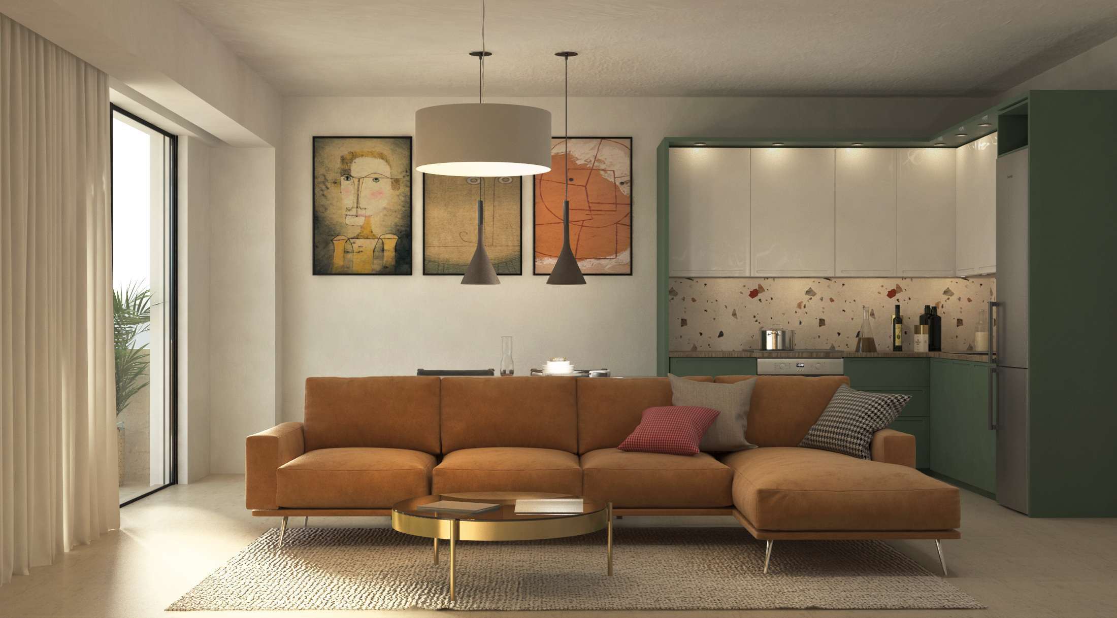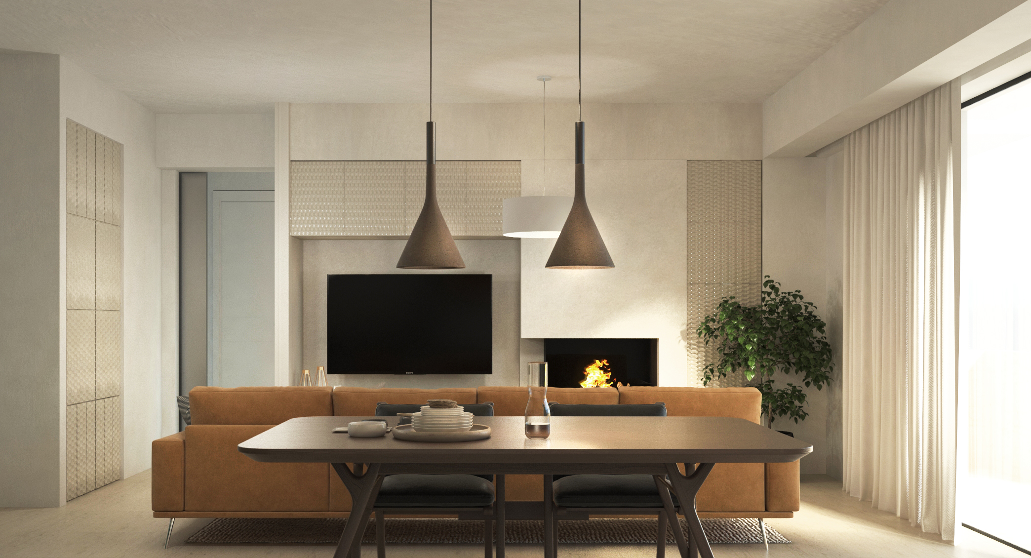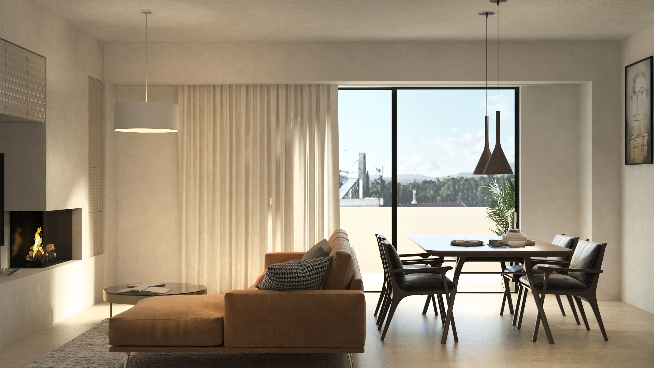 Αποτελείται από καθιστικό – κουζίνα – ενιαίο χώρο, δύο υπνοδωμάτια, λουτρό, ενεργειακό τζάκι και εξώστες.